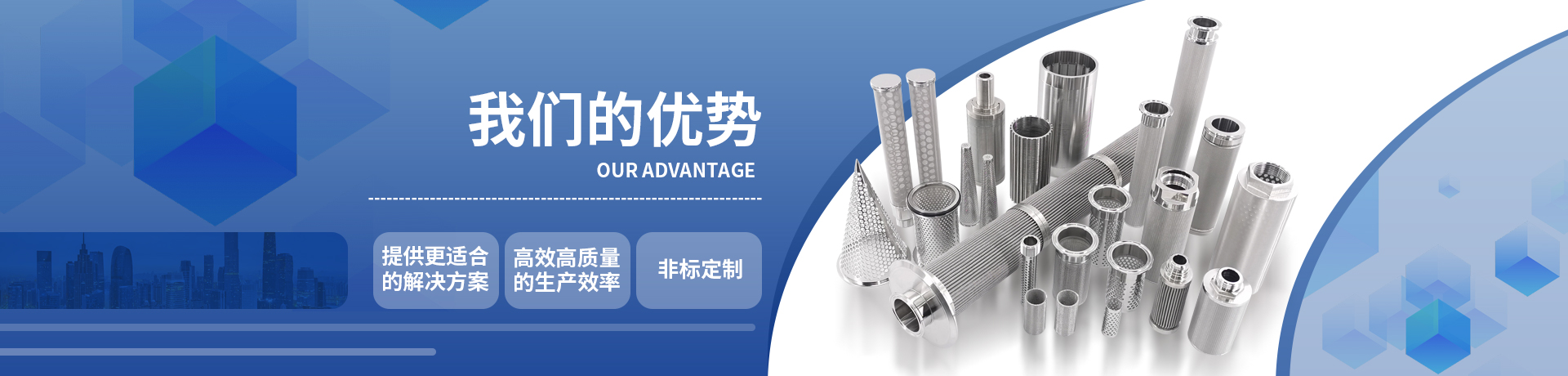 >> 不銹鋼過濾筒、不銹鋼濾芯、燒結網濾芯、各種不銹鋼過濾器、過濾袋、過濾片、錐形濾筒、不銹鋼工藝品、消毒筐、不銹鋼網、不銹鋼過濾網、油煙濾網及各種精 密沖壓件等三百多種過濾器材制品。產品廣泛應用于石油、化纖、采礦篩選、冶金、機械制造戶提供專業(yè)和及時的售后服務。